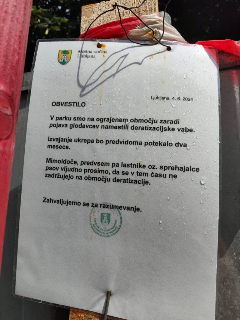 »Zaradi pojava podgan v Miklošičevem parku bomo skupaj z Nacionalnim laboratorijem za zdravje, okolje in hrano izvedli deratizacijo območja, v javnem podjetju Voka Snaga pa bodo hkrati opravili še deratizacijo podzemnega kanalizacijskega omrežja,« so ob zaprtju parka v začetku junija pojasnili na MOL-u.