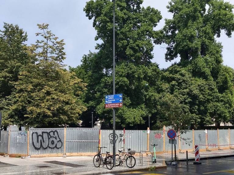 Že od začetka junija je Miklošičev park ograjen z visoko ograjo in opremljen s sporočili »Ne meči hrane, ker množijo se podgane!«