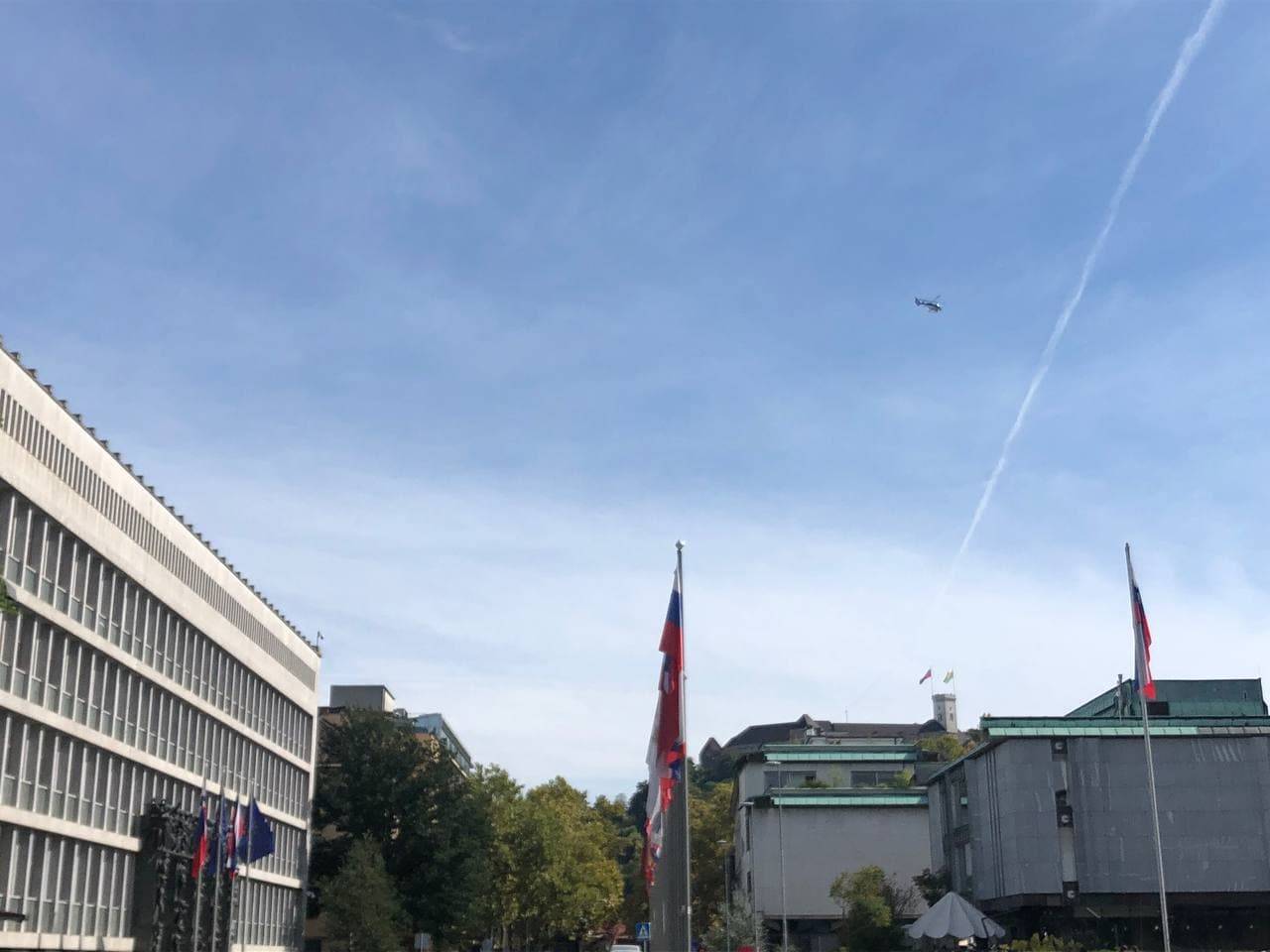 Prav tako je parlament in center Ljubljane danes že nekajkrat preletel helikopter.