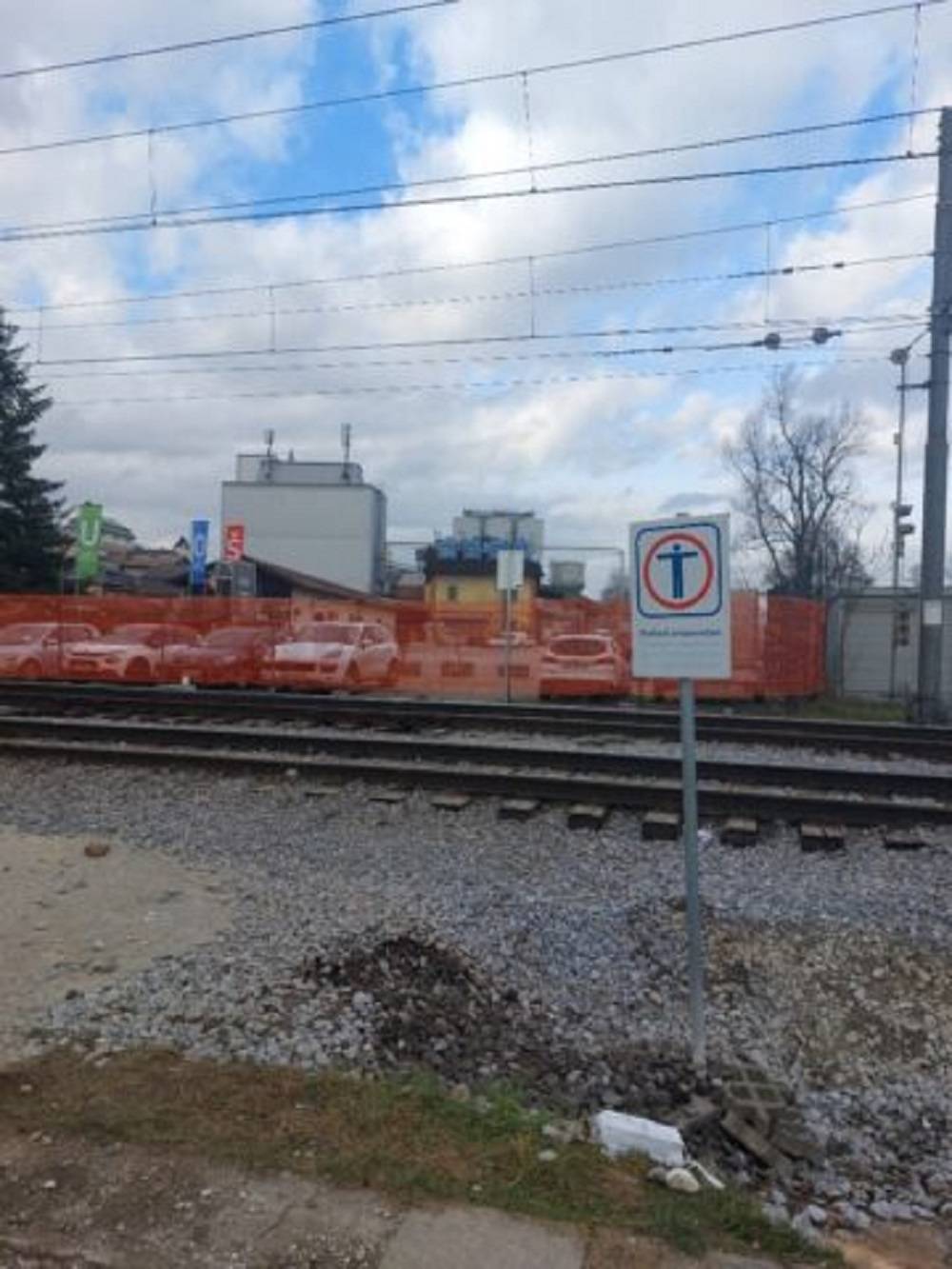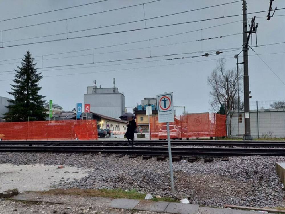 »Vlaki na tem delu vozijo frekventno na vsakih nekaj minut. Izvajajo se gradbena dela, ki so hrupna, zaradi česar vlaka morda ne bo slišati.«