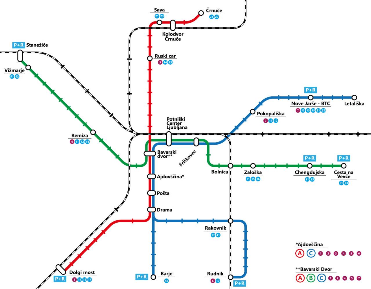 Jedro njihovega koncepta predstavljajo zmogljive avtobusne linije, ki bi potekale po koridorjih, in glavne prestopne točke med različnimi vrstami javnega prometa. »Nov potniški center bo lahko zaživel le v primeru, da bo omogočil bistveno povečanje uporabe javnega potniškega prometa in prevzel tudi pomemben del od prek 120.000 dnevnih migrantov v Ljubljano. Za konkurenčnost javnega prometa je ključnega pomena, da lahko potnik opravi z njim celotno pot od začetka do cilja, torej z medkrajevnim in mestnim prometom, ter s čim manj in čim krajšimi prestopi.«