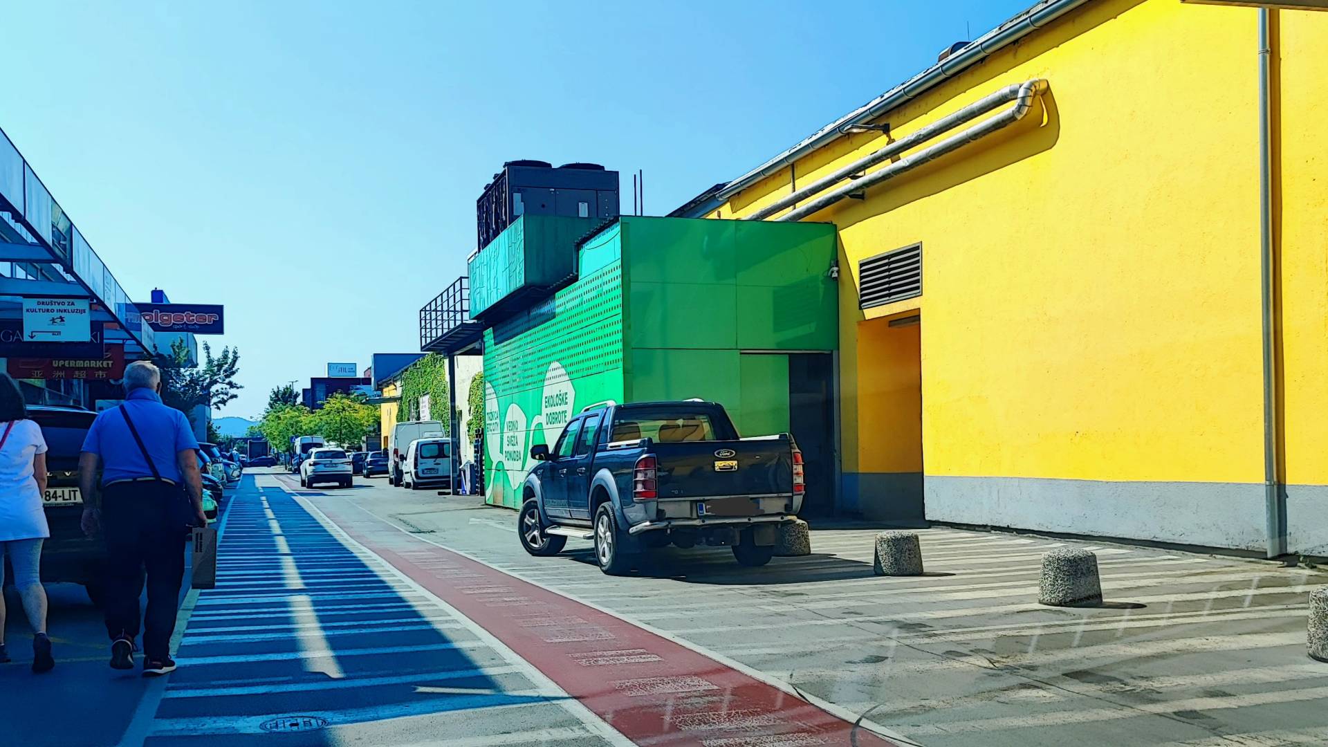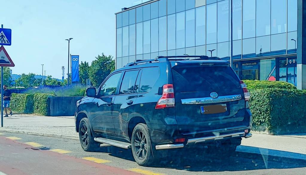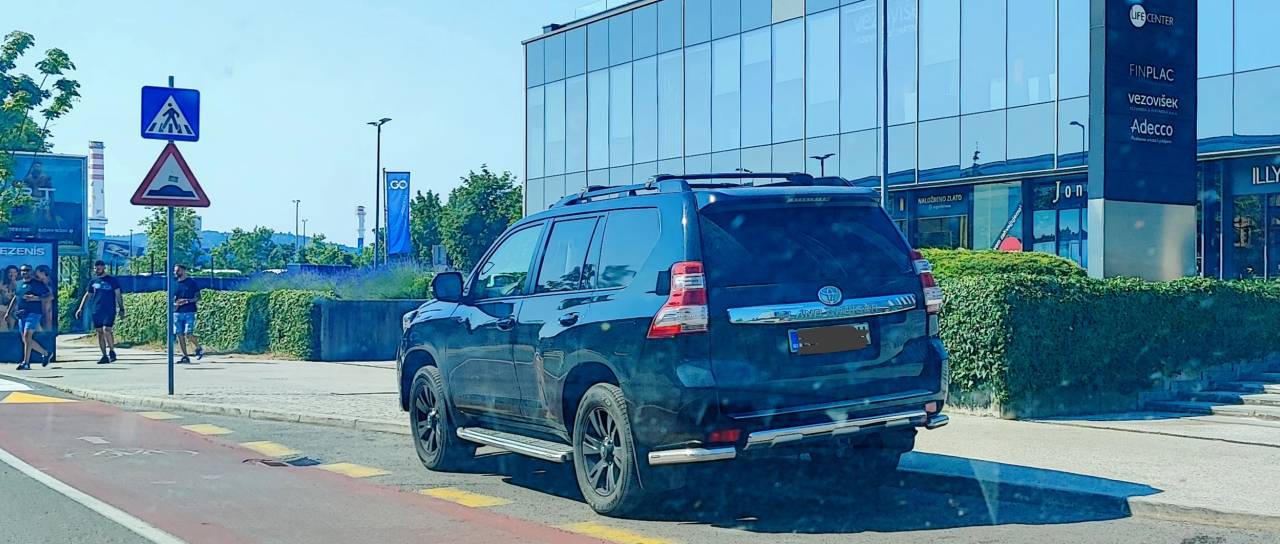 V času našega obiska je bilo eno vozilo parkirano celo delno na kolesarski poti, delno pa na območju z jasno talno oznako prepovedi parkiranja.