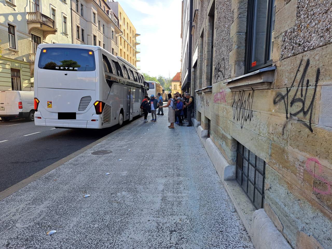 Na kraj smo se večkrat podali tudi sami, da bi se o dogajanju prepričali na lastne oči. In smo se: na Dalmatinovi ulici se ustavljajo turistični avtobusi, skupaj z njimi pa tudi vsi udeleženci v prometu, ki jim vozijo za petami.