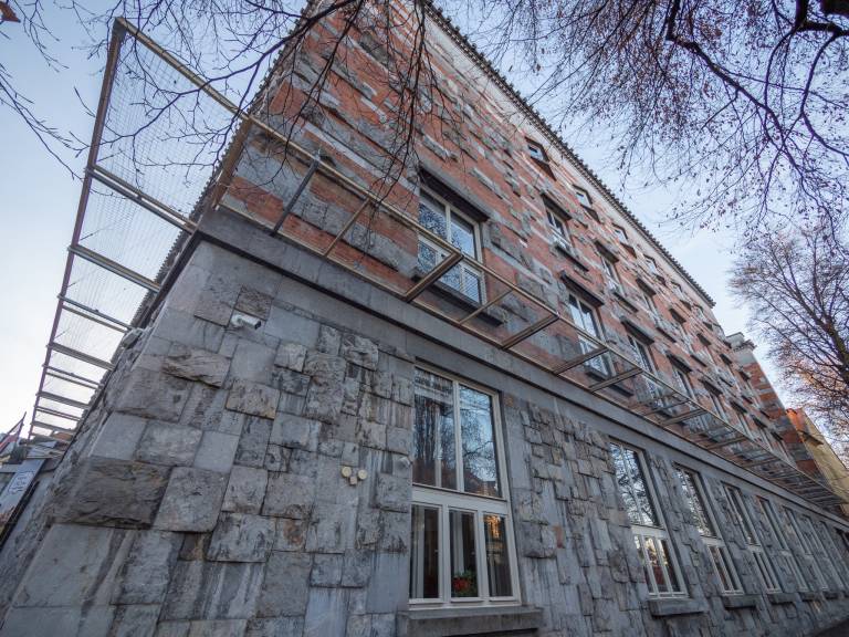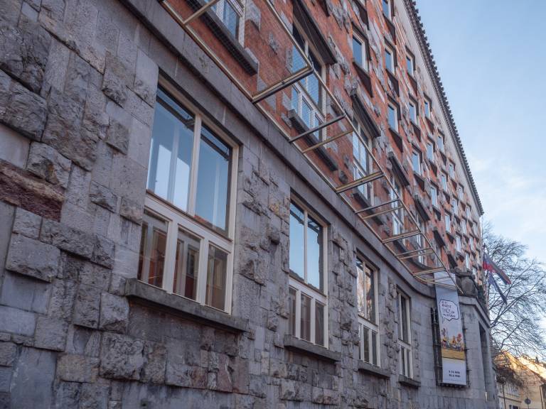 Mimoidoči so opazili, da je del fasade Narodne in univerzitetne knjižnice v središču Ljubljane zaščiten z lovilnimi mrežami.