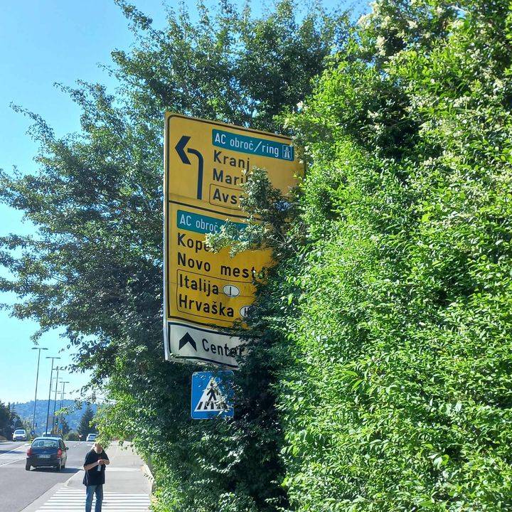Posledično so se okoliška drevesa razrasla do te mere, da so že popolnoma prekrila prometne znake.