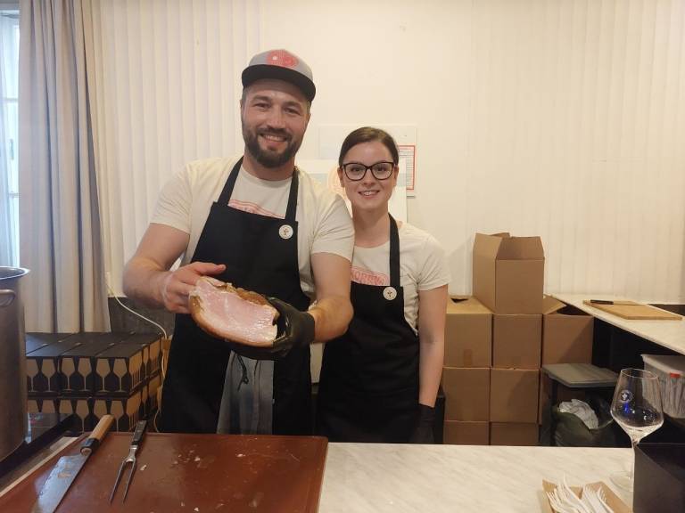 S svojo pohorsko šunko se predstavlja Filip Flisar, nekdanji svetovni prvak v smučarskem krosu, ki se je po zaključeni karieri lotil prav posebnih poslovnih izzivov in nam tik pred velikonočnimi prazniki letos prestavil svojo odlično Pohorsko šunko.