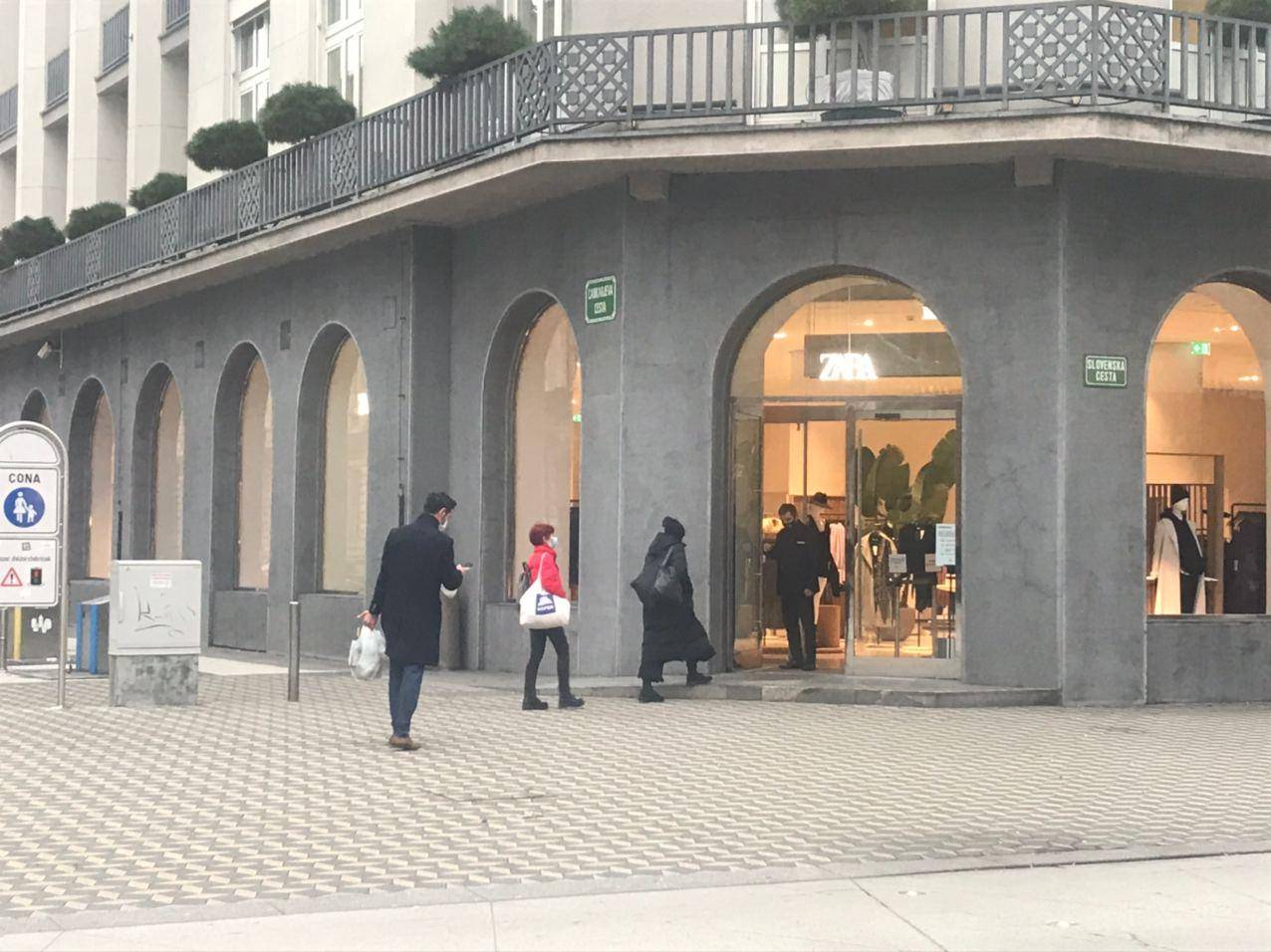 Ob 9. uri zjutraj pred trgovinami gneče še ni bilo. Po dveh mesecih so takole prvi kupci zakorakali v eno izmed priljubljenih trgovin z oblačili.