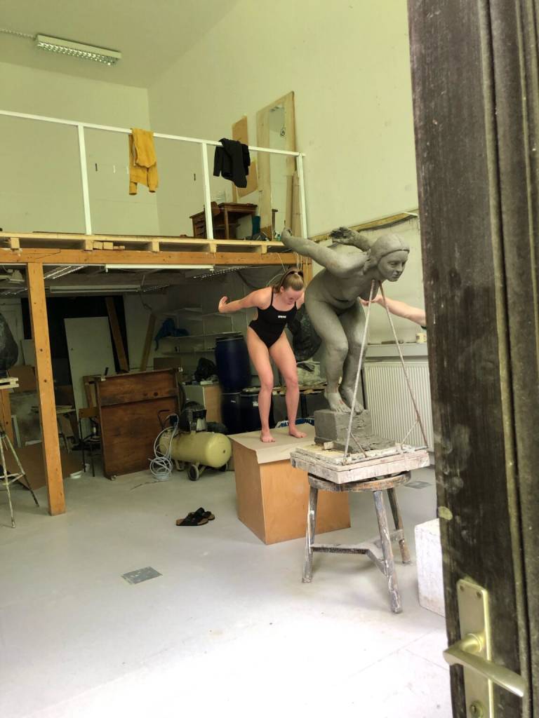 V ateljeju je tako dlje časa nastajal kip plavalke, ki so mu namenili veliko pozornosti.