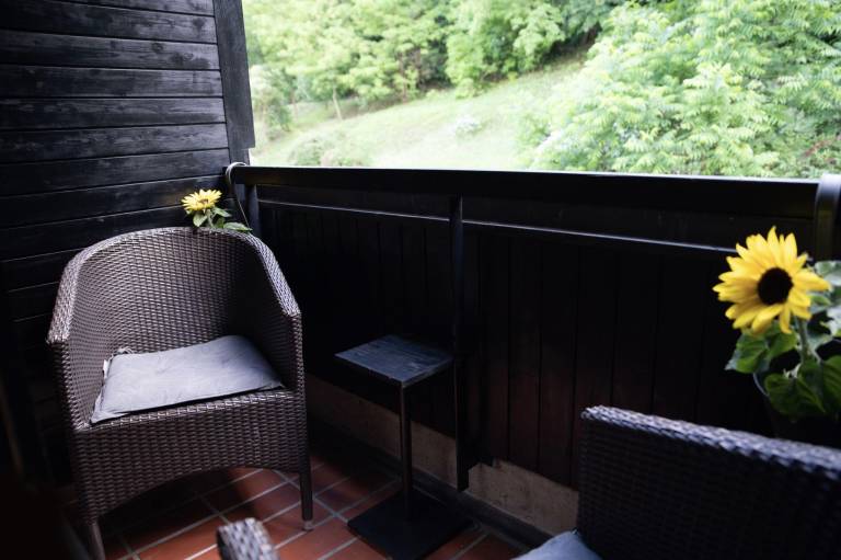Stanovanje nudi razgled na zelenje pod gradom. In še marsikaj drugega za 1000 evrov na mesec.