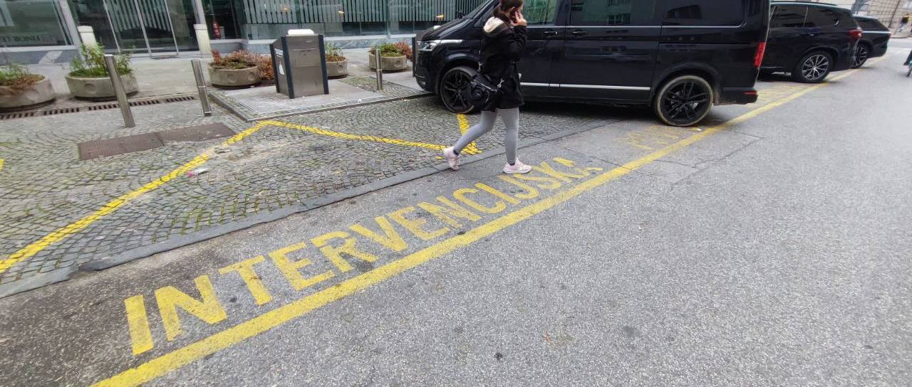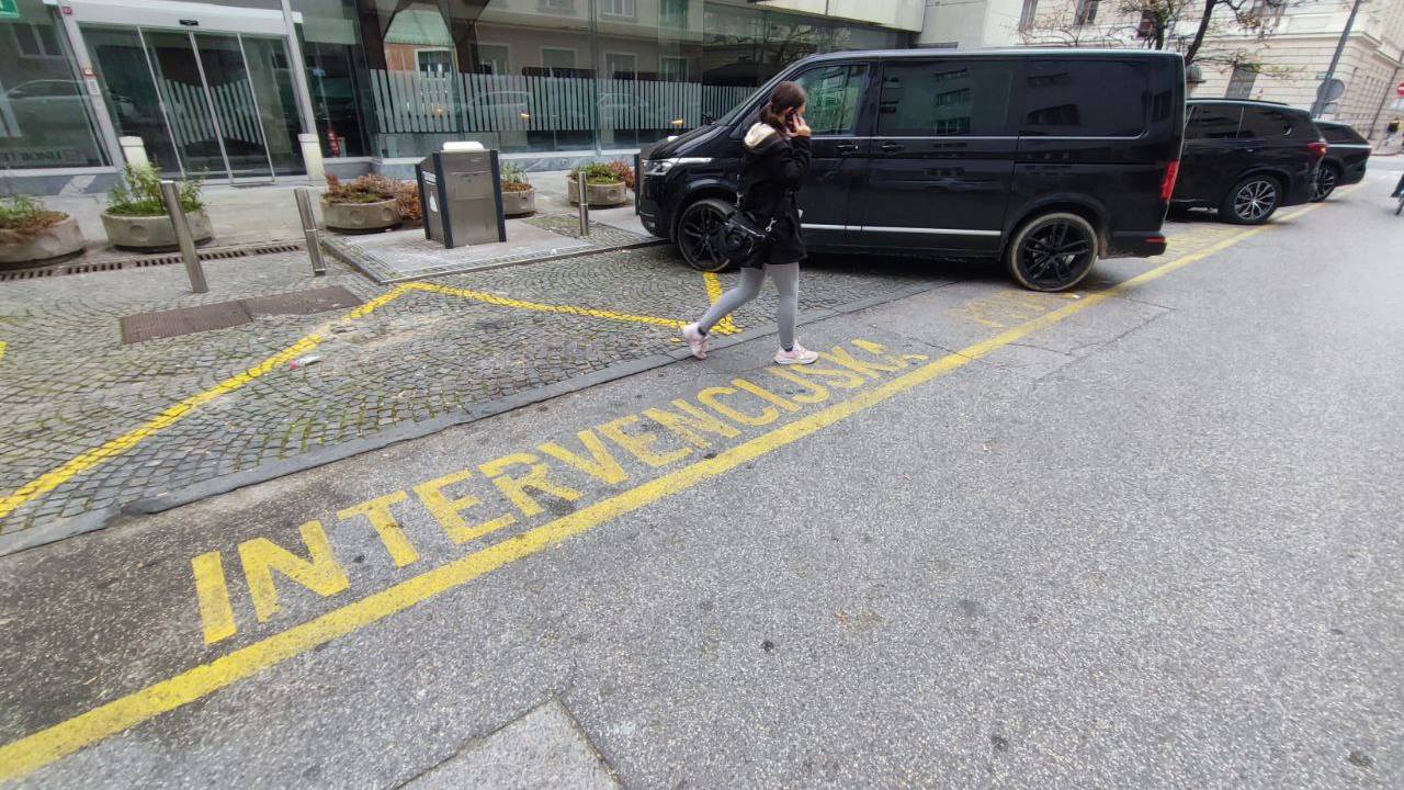 Intervencijska površina na Cigaletovi ulici 4, neposredno ob stavbi, kjer je nekoč delovala poslovalnica Intese Sanpaolo, je očitno postala neuradno brezplačno parkirišče. Površina je sicer namenjena izključno intervencijskim vozilom, a je v praksi skoraj ves čas zasedena z avtomobili, ki tja ne sodijo.