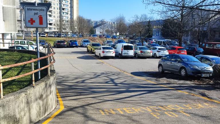Intervencijsko površino so blokirala tri vozila: beli BMW ter črn in siv Audi. Rešilec, gasilci, policija ali druge nujne službe po tej poti ne bi mogli dostopati.
