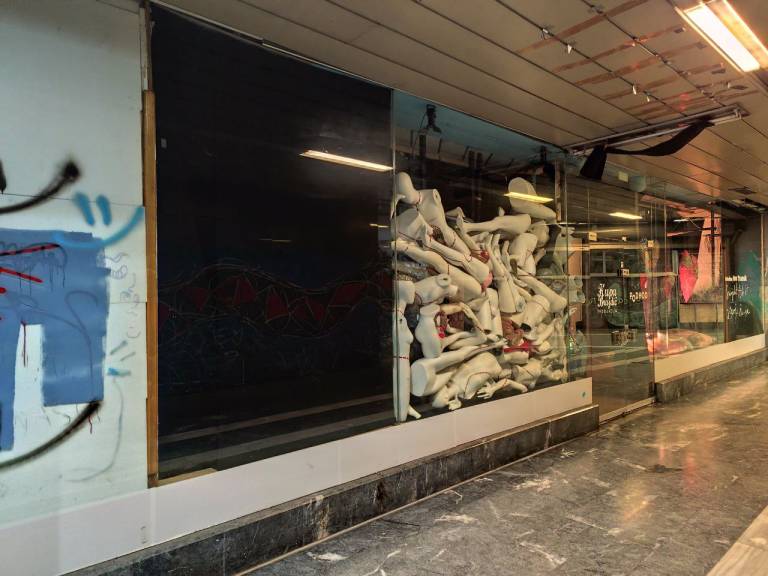 Zakaj? Tekoče stopnice običajnoi ne delujejo, a ob našem obisku celo so delovale, kljub temu pa je bil podhod popolnoma prazen, srečali nismo niti ene osebe. Takoj je začutiti vonj po urinu in umazaniji, čeprav je bil verjetno nedavno očiščen. Kljub temu je videti, da je podhod Ajdovščina za nekatere tudi prenočišče.
