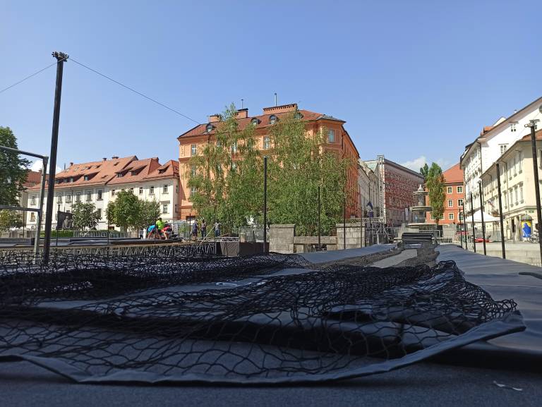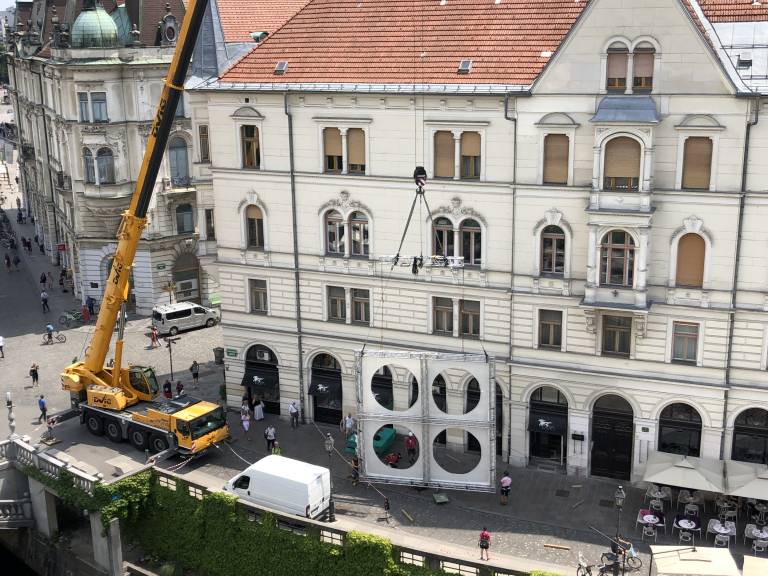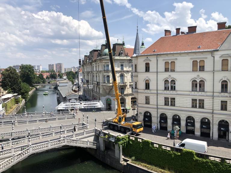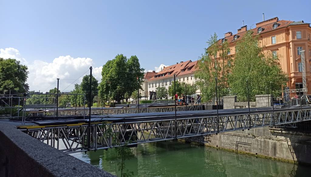 V zadnjih dneh poglede mimoidočih, ki se sprehajajo po središču prestolnice, privabi konstrukcija nad Ljubljanico. Kaj se dogaja?