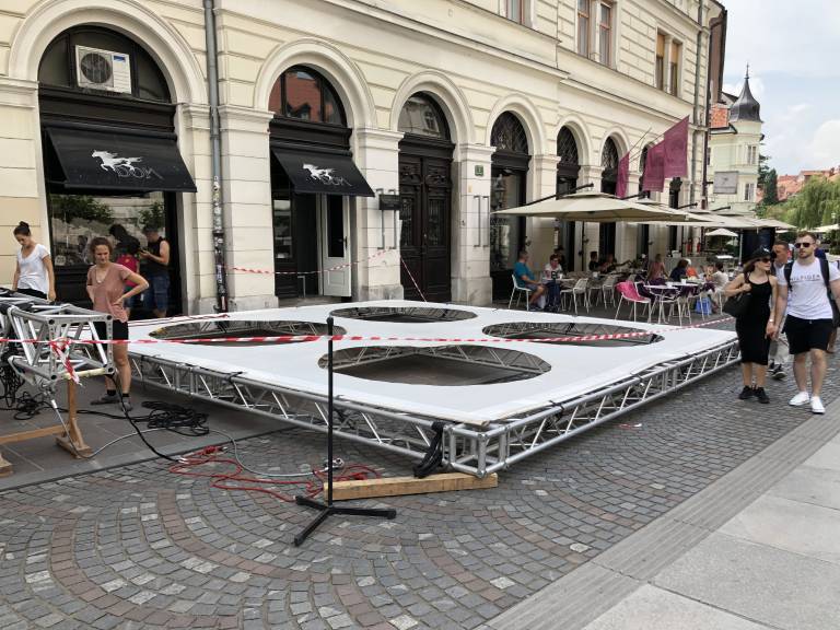Avgusta lani so v okviru dogodka Odbito na Ljubljanici nad Ljubljanico postavili največji trampolin na svetu, na njem pa so skakali tako akrobati kot tudi meščani.