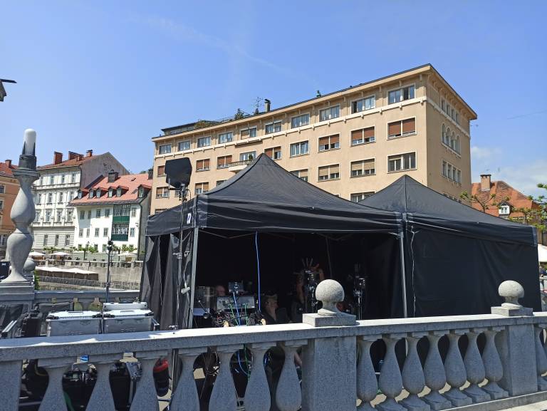 Tik ob Tromostovju, pred Filipovim dvorcem na Stritarjevi ulici, boste danes naleteli na nenavaden prizor. Ta del mesta so namreč za nekaj časa zaprli za javnost. Podobna zapora je sprehajalce pričakala na včerajšnjo sončno nedeljo.