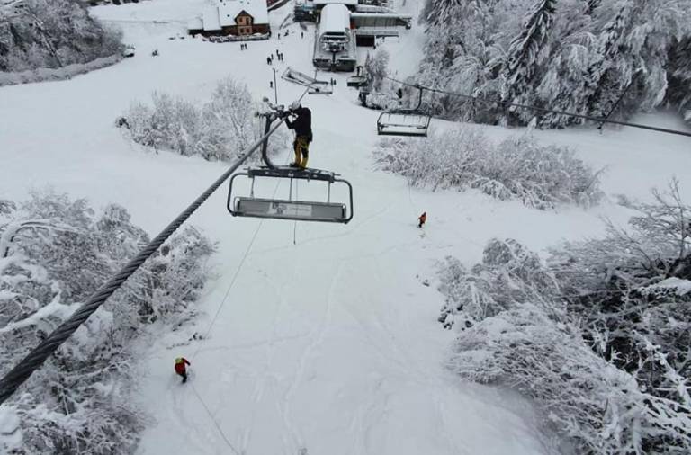 Škofjeloški gasilci so se včeraj mudili na Smučišču Stari vrh. S fotografij, ki so jih objavili na družbenem omrežju Facebook, je razvidno, da so viseli kar z žičnice. Kaj so tam počeli?