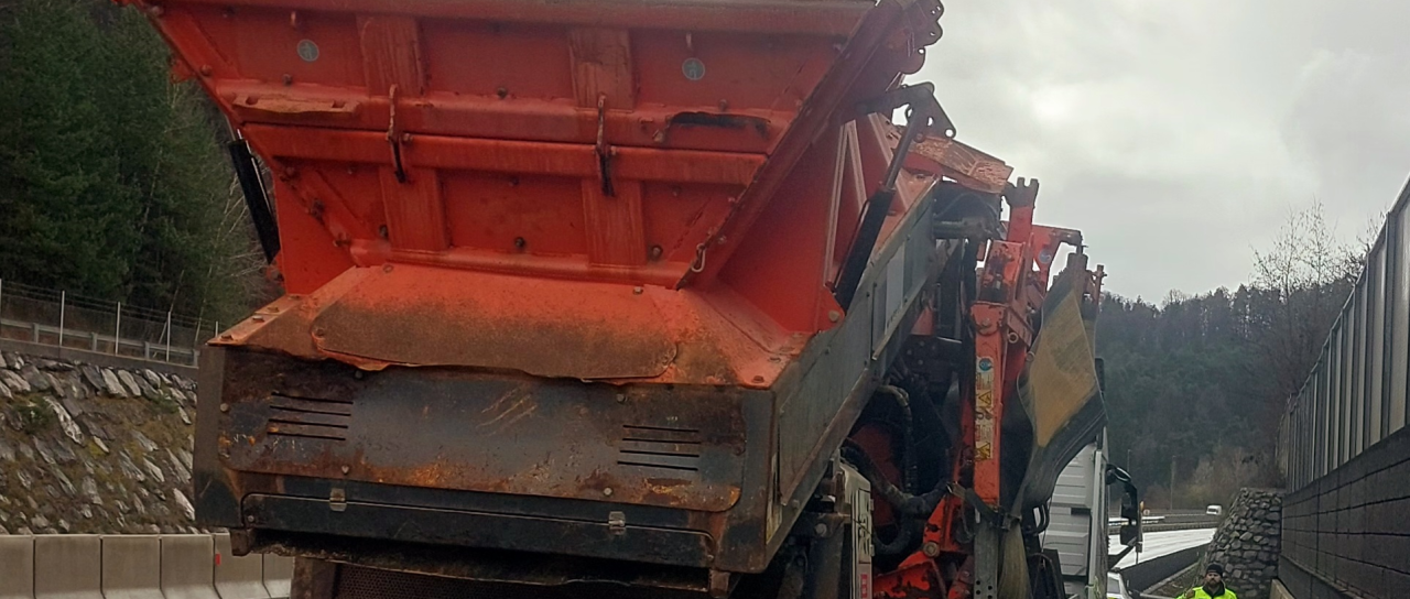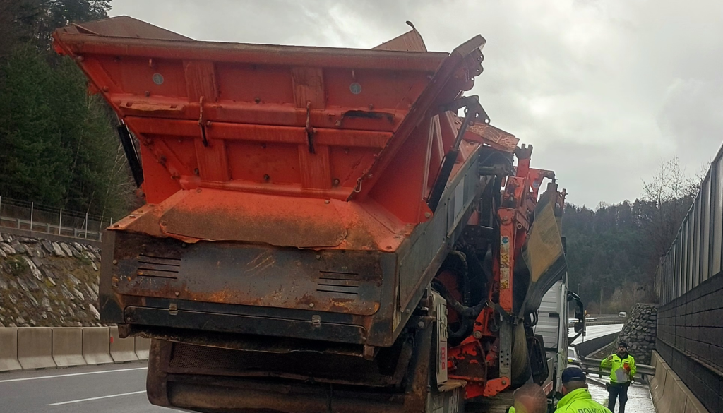 Ljubljanski prometni policisti so v sredo na avtocesti pred tunelom Golovec obravnavali voznika tovornjaka, ki je prevažal delovni stroj.