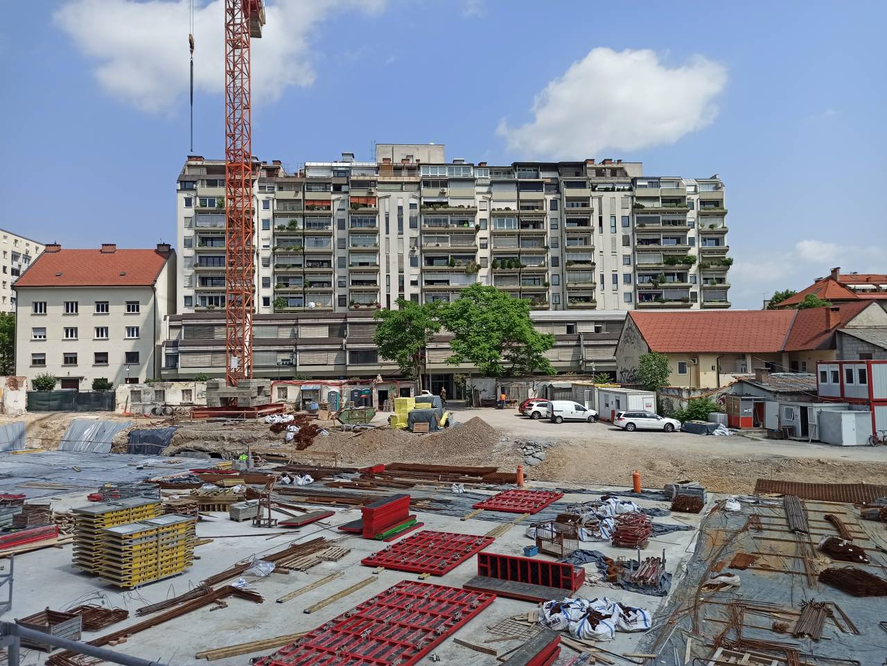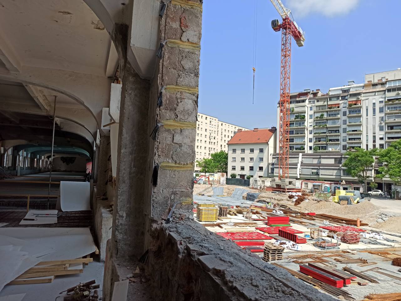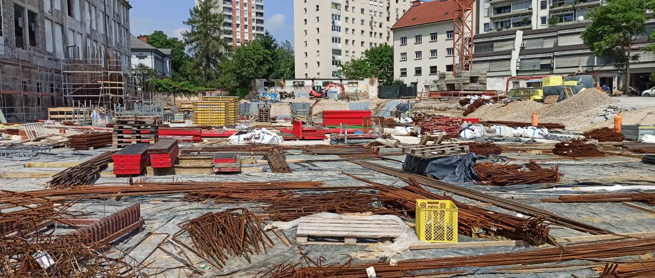 Ob vhodu na gradbišče stopimo naravnost v bodoči javni park, ki meri osem tisoč kvadratnih metrov. Spredaj ob poslopju bo stala eno nivojska podzemna garaža z 82 parkirnimi mesti. Polovica bo namenjena uporabnikom Centra Rog, druga polovica pa bo omogočila okoliškim prebivalcem dolgotrajni najem.