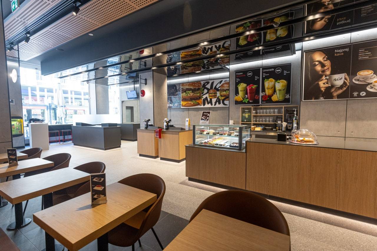 »Gostom bo v prijetnem ambientu, ki je zasnovan v edinstvenem modernističnem stilu s posameznimi retro elementi na voljo brezplačen wi-fi, celotna McCafe kavarniška ponudba, 10 ekranov za naročanje in dve blagajni,« so ob odprtju sporočili iz restavracije.