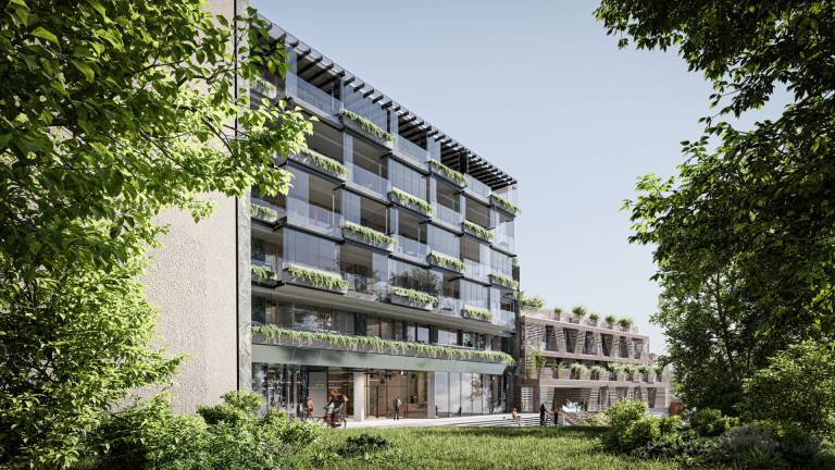 Tam so bile načrtovane trgovine, restavracija, kavarna, poslovni prostori in stanovanja.