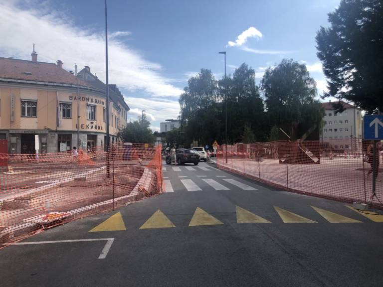 Zaprto ostaja tudi križišče Aškerčeve ceste s Prešernovo cesto in Groharjevo ulico.