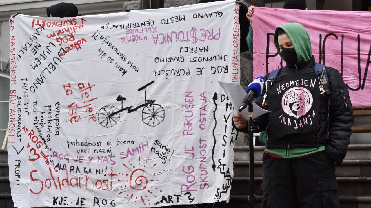 Predstavniki Avtonomne tovarne Rog so leto dni po tem, ko je Mestna občina Ljubljana v posest prevzela objekt nekdanje tovarne Rog in začela z rušenjem, pripravili novinarsko konferenco pred Mestno hišo.