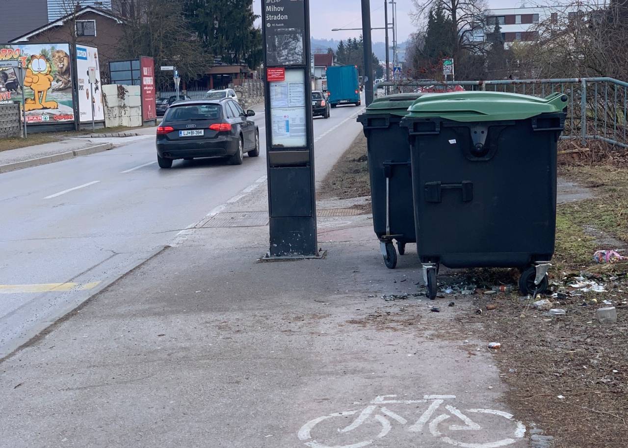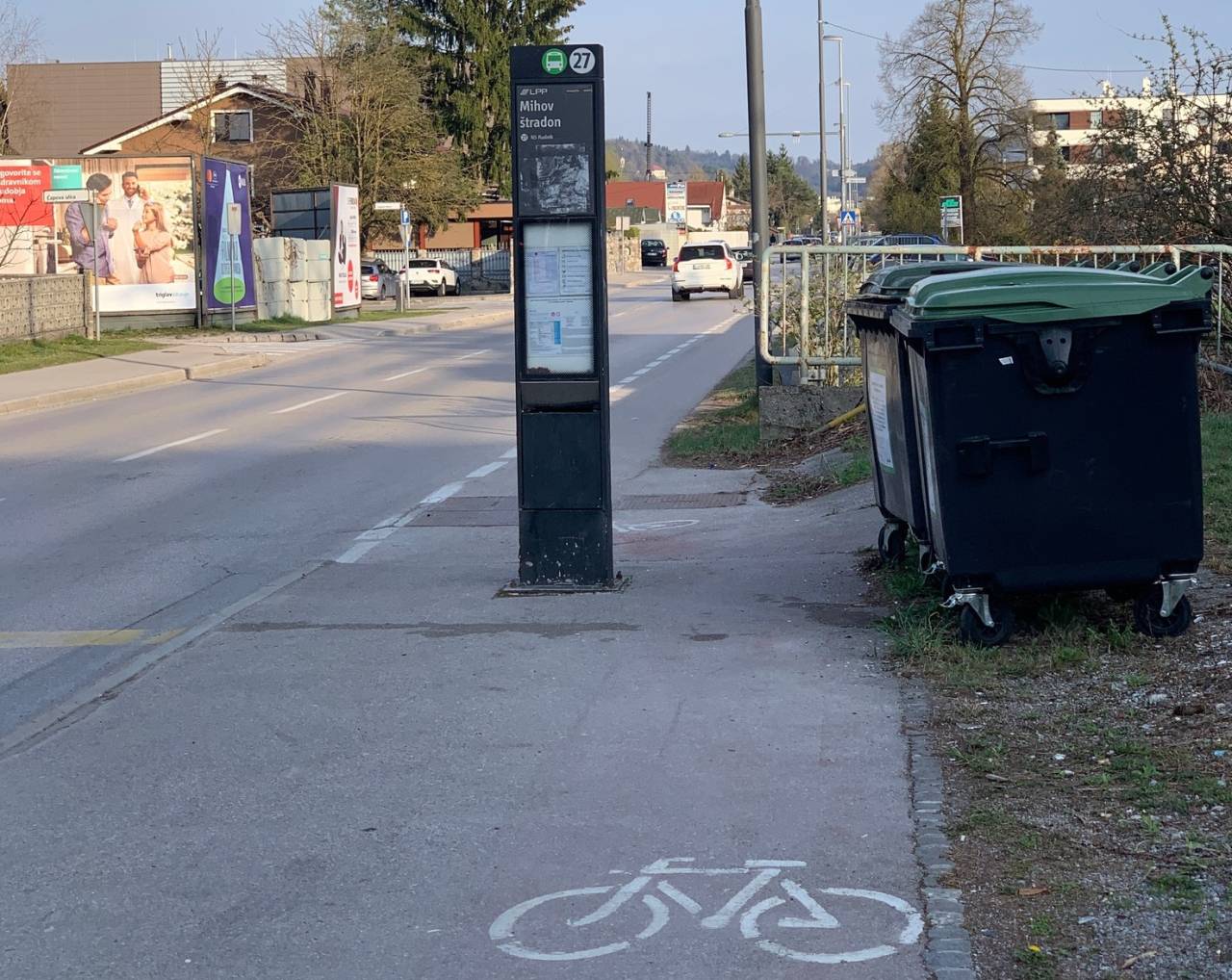 Konec marca so člani Ljubljanske kolesarske mreže na Mestno občino Ljubljana naslovili že pesto pobudo za odstranitev smetnjakov s kolesarske steze.