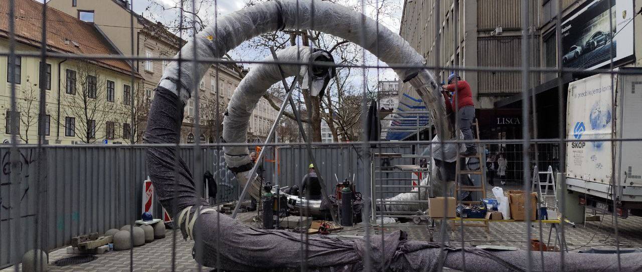 Prejšnji mesec smo obiskali lokacijo, kjer bo zaživela vodna skulptura, to je stičišče Slovenske ceste s Tomšičevo ulico, pred arkadami Konzorcija.