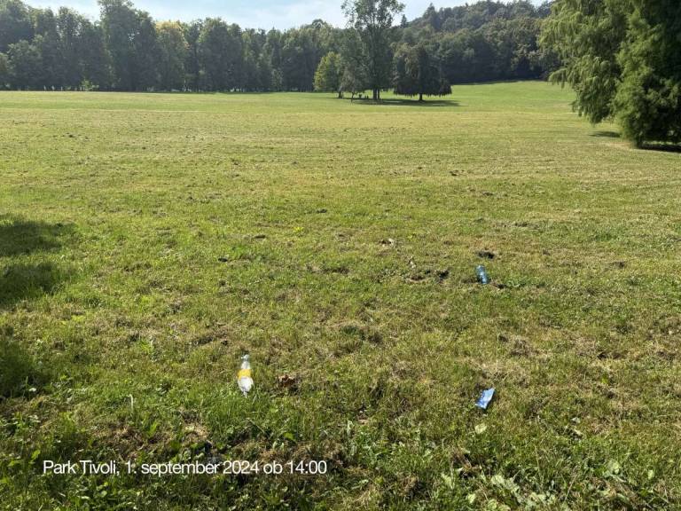 Še več: za primerjavo so objavili tudi fotografijo travnika iz parka Tivoli, posneto 1. septembra, le dan po Magnificovem koncertu, na kateri so vidne številne odvržene plastenke in druge smeti.