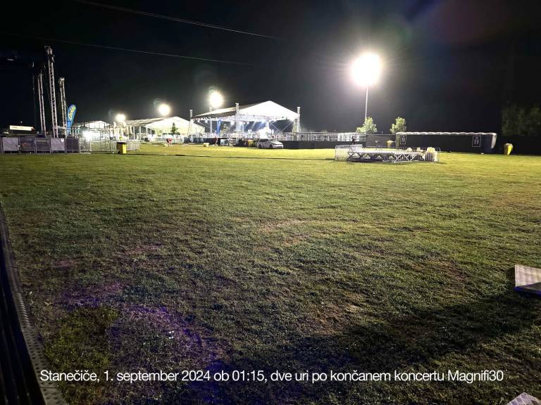 Fotografija, ki jo je na svojem Facebook profilu delila Magnificova založba, Dom Svobode, prikazuje prizorišče dve uri po koncu koncerta. Zelenica izgleda nepoškodovana.