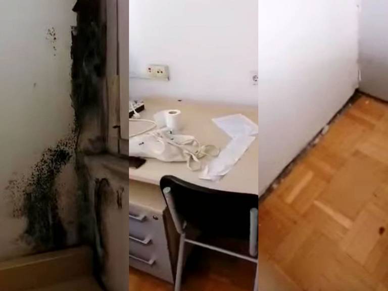 »Sprašujem se, če starši vedo, v kakršnih sobah v študentskih domovih živijo njihovi otroci? To je soba, katero je v petek dobilo moje dete v Študentskem domu Ljubljana v 'devetki'! Toliko plesnobe, da ne moreš verjeti! Zanima me, če bi direktor Zavoda Študentski dom Ljubljana Tomaž Pečnik dal svojemu otroku, da živi v takšni sobi. Sramota! Kako lahko sploh takšno sobo dajo naprej v najem, brez da bi jo najprej pregledali in sanirali?«