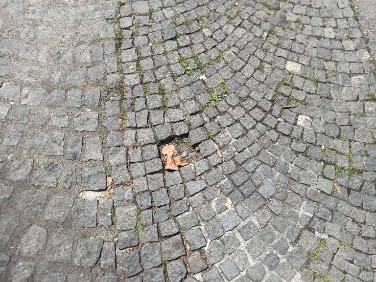 Ponekod po prestolnici na tleh manjkajo granitne kocke ali so poškodovane.