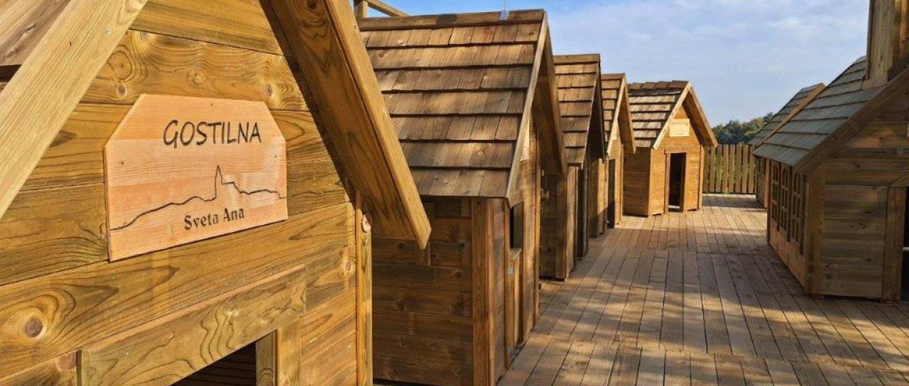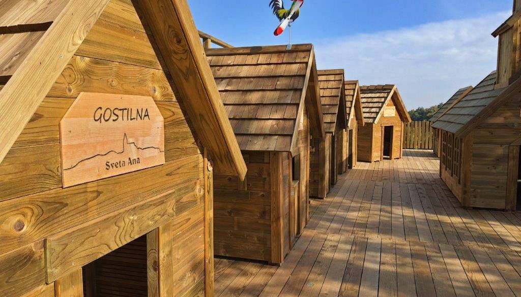 Objekte v pomanjšanem merilu je izdelalo Podjetje za gozdne gradnje in hortikulturo iz Maribora, ki je premagalo vse logistične ovire pri prevozu hišk na Sveto Ano.