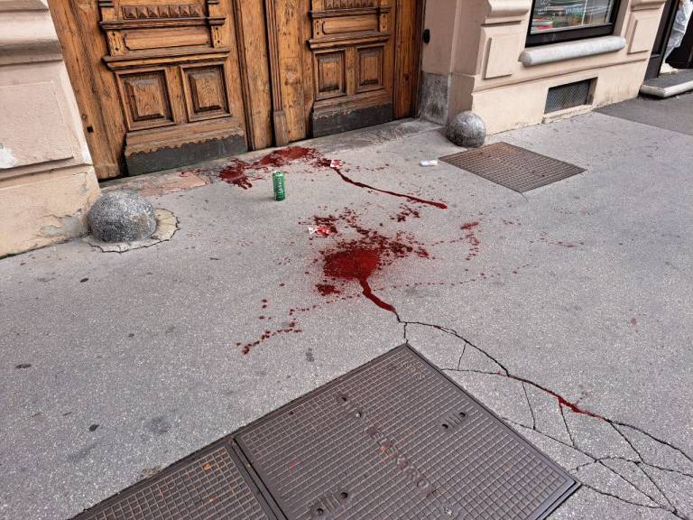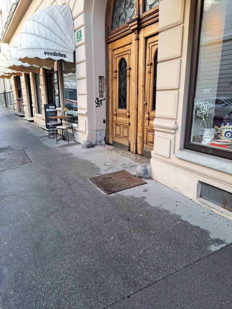 Včeraj popoldne – bilo je malo pred 16. uro – so se mimoidoči, ki so pot ubirali po desnem pločniku Miklošičeve ceste, torej stran od mestnega središča, pred hišno številko 22 na vse pretege trudili, da ne bi stopili v katerega od rdečih madežev, ki je kazil plast asfalta pešcem odmerjene površine.