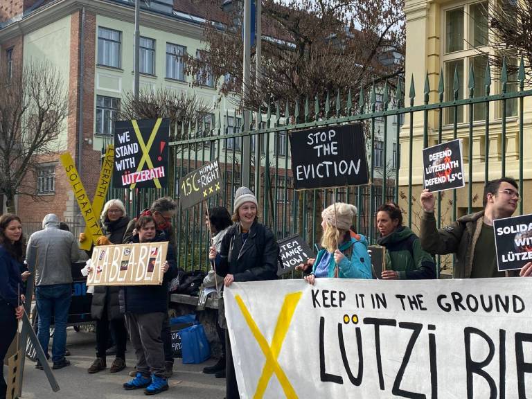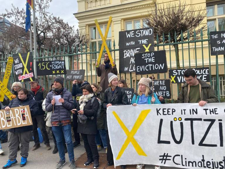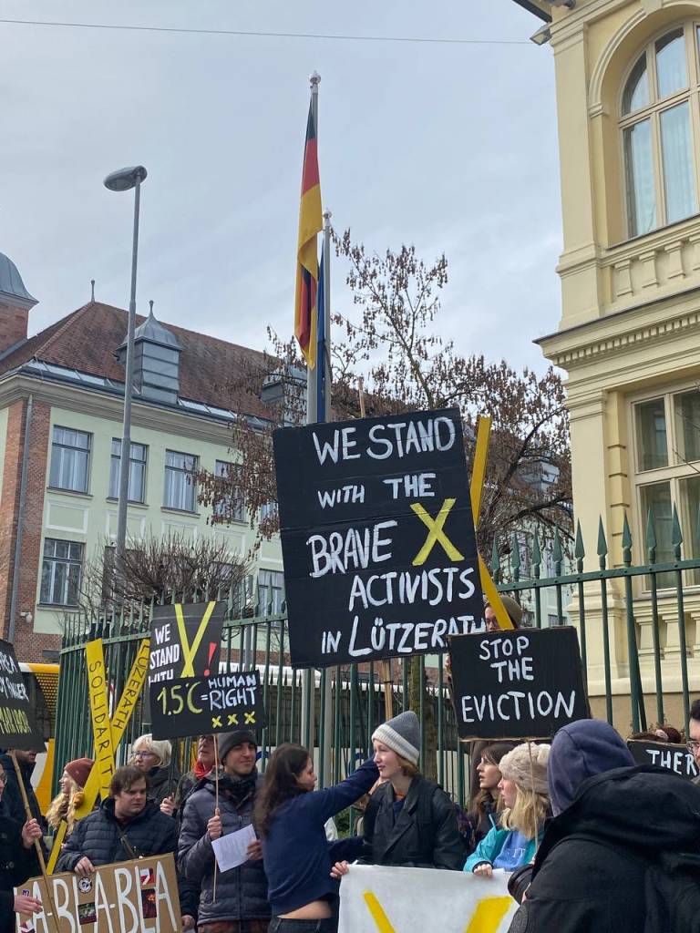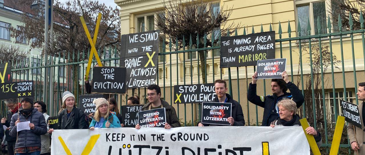 Protest so organizirali z namenom podpreti zahteve nemških aktivistov, ki so zadnji dve leti zasedali in ščitili Lüzerath, zdaj pa jih preganja policija.