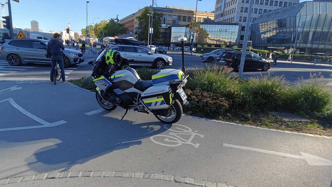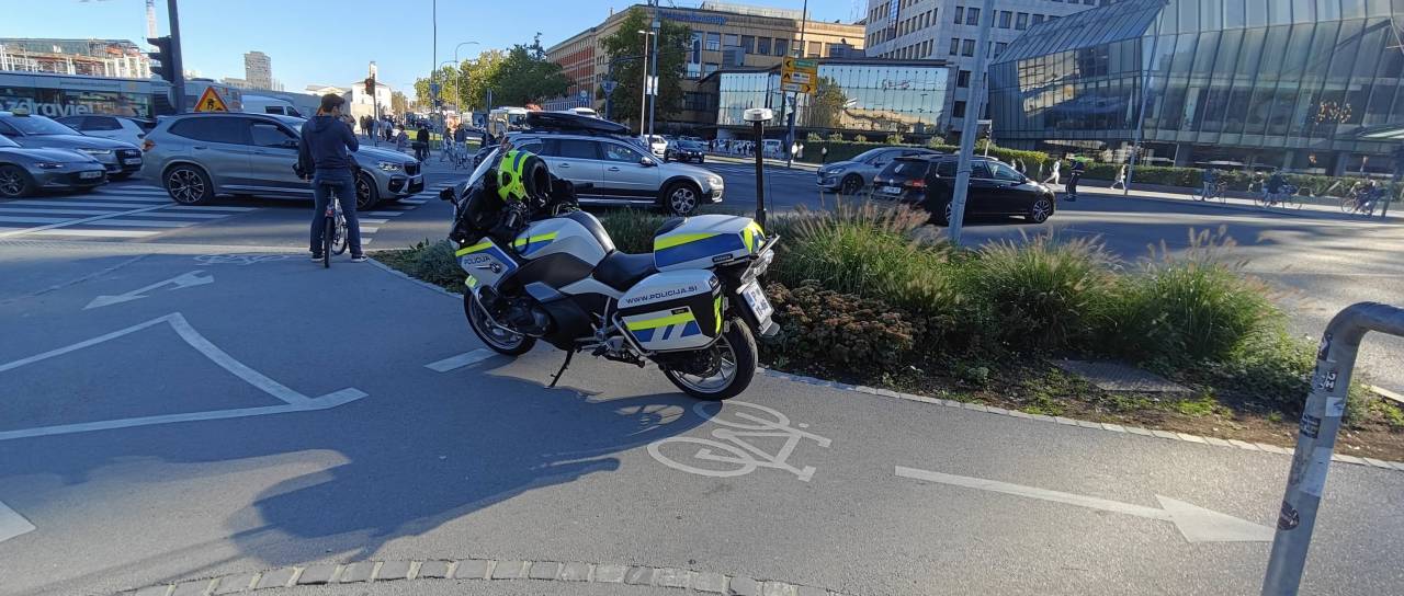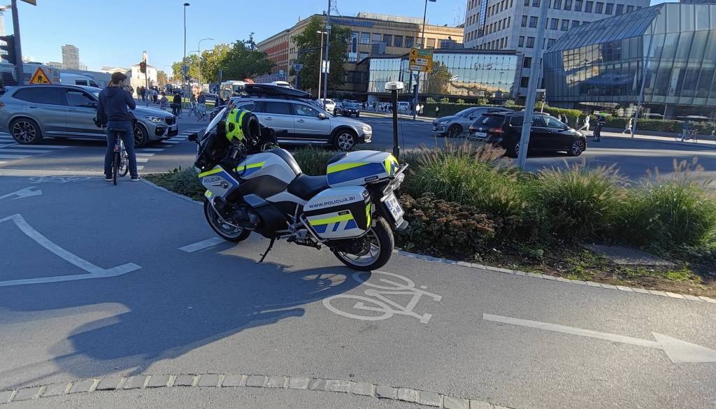 Na svojem profilu na Facebooku so objavili fotografijo, posneto v strogem središču Ljubljane, v bližini Bavarskega dvora. Na njej je videti policijski motor, ki stoji na eni najbolj obremenjenih kolesarskih poti prestolnice.