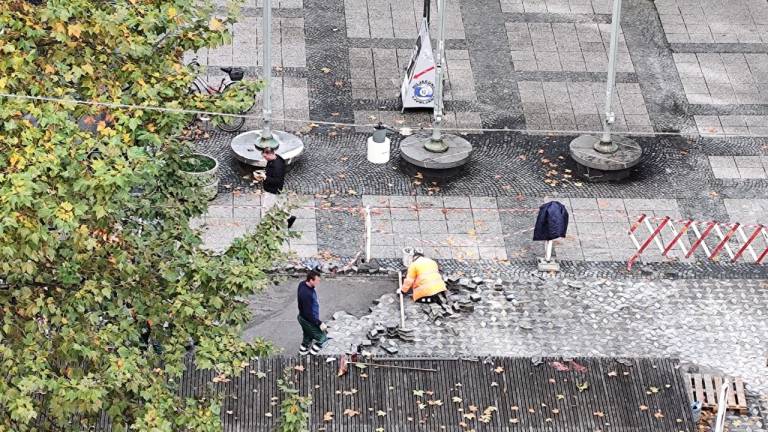 Zaradi tega so izvajalci začeli sanacijo tlakovcev, ki zajema dvig in ponovno utrditev podlage ter polaganje obstoječih granitnih kock nazaj v prvotno obliko.