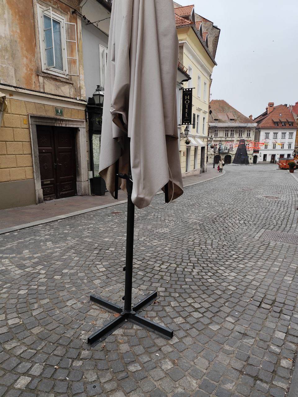 Na mestni občini so nam povedali, da »Oddelek za gospodarske dejavnosti in promet Mestne uprave Mestne občine Ljubljana, pristojen za javni prostor, dovoljenja ali soglasja za vijačenje senčnika v tla ni izdal«.