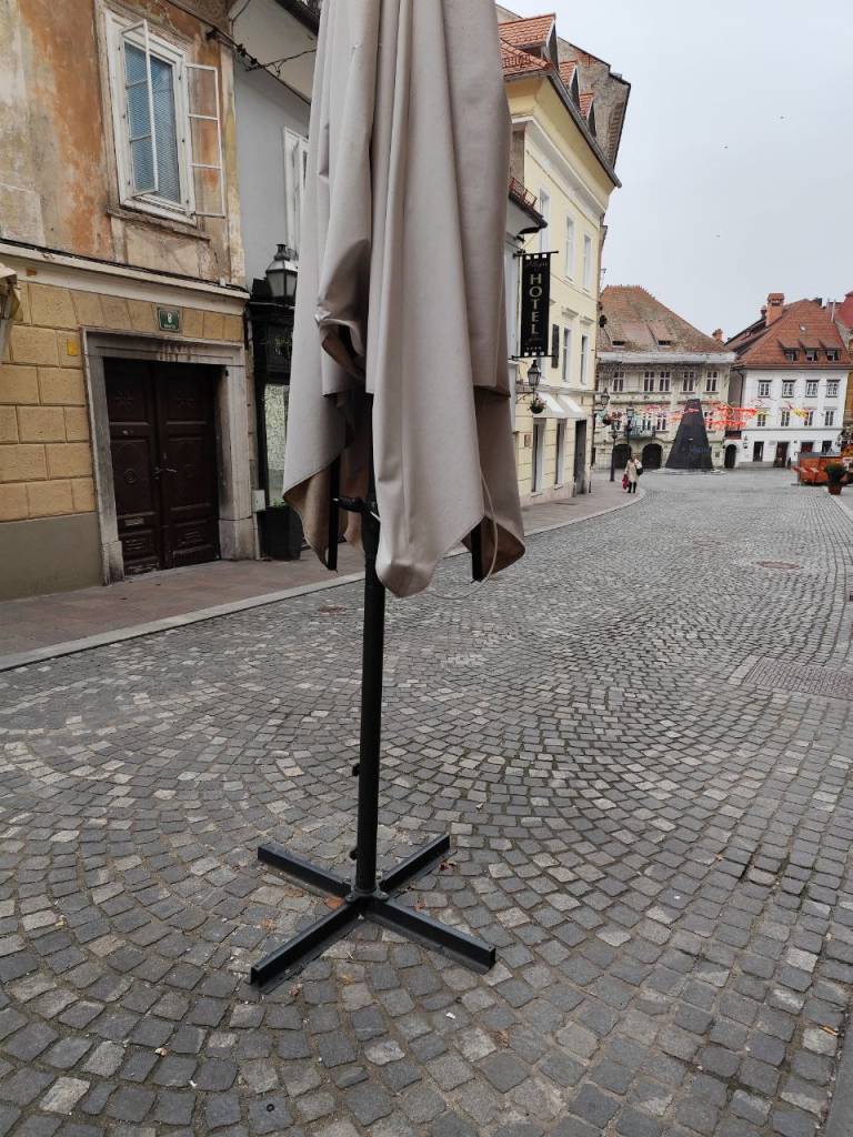 Mestna občina Ljubljana je bila opozorjena, da naj bi lastnik enega od gostinskih lokalov na Gornjem trgu v kamnite kocke zavrtal luknje in tja pričvrstil senčnik, tako da stoji kar sredi trga, javne površine.
