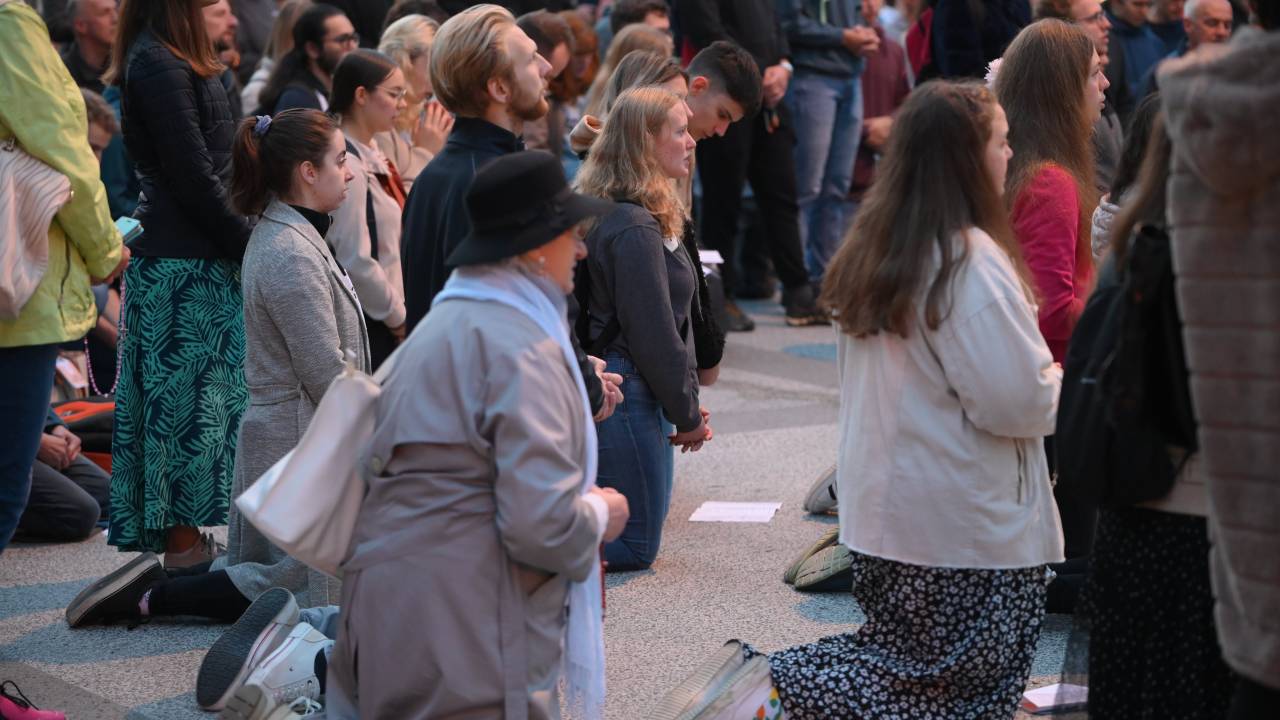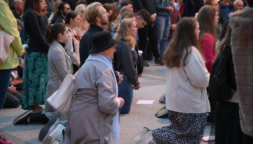 Organizacija Katoliška mladina je danes na Kongresnem trgu v Ljubljani pripravila prvo javno molitev rožnega venca.