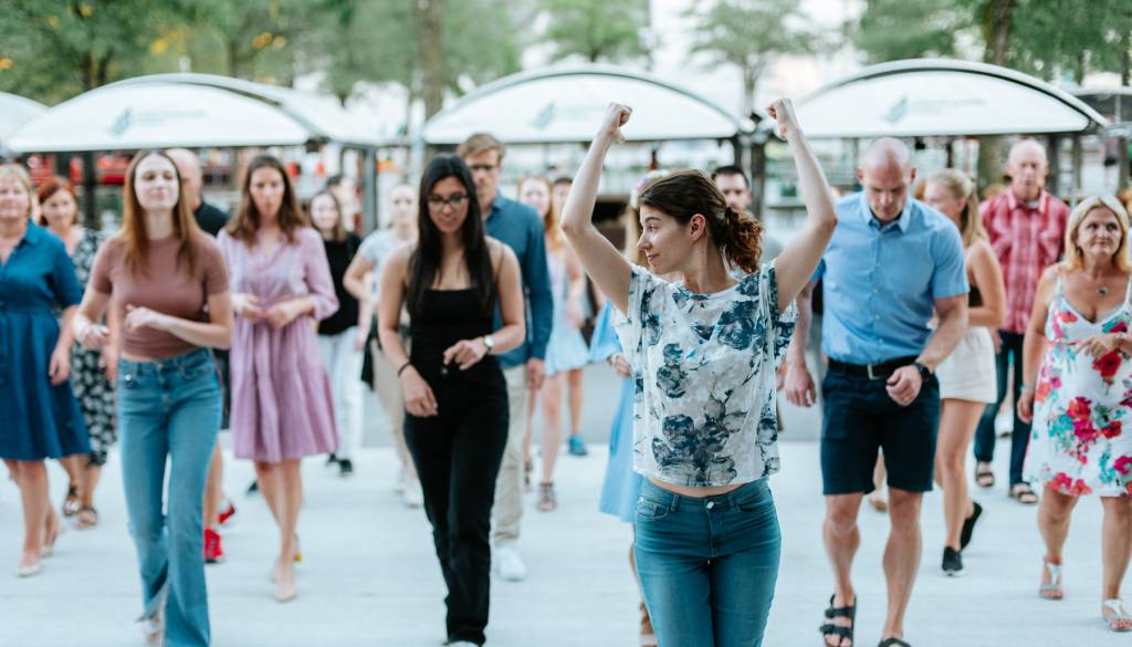 Obiskovalci se ob prijetni glasbi in v prečudovitem ambientu pod Plečnikovi arkadami vsako sredo med 20. uro in polnočjouživajo v plesnih korakih pod vodstvom plesnih šol. Prvih 30 minut je namenjenih obiskovalcem, ki bi se radi naučili prvih plesnih korakov, preostanek časa pa je namenjen prostemu plesu.