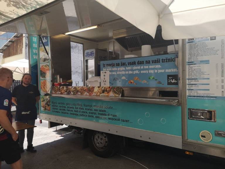 Zmajčkov kotiček ima dve prikolici, ki ponujata hrano. Na eni lahko najdete morsko hrano, druga pa ponuja hitro hrano.