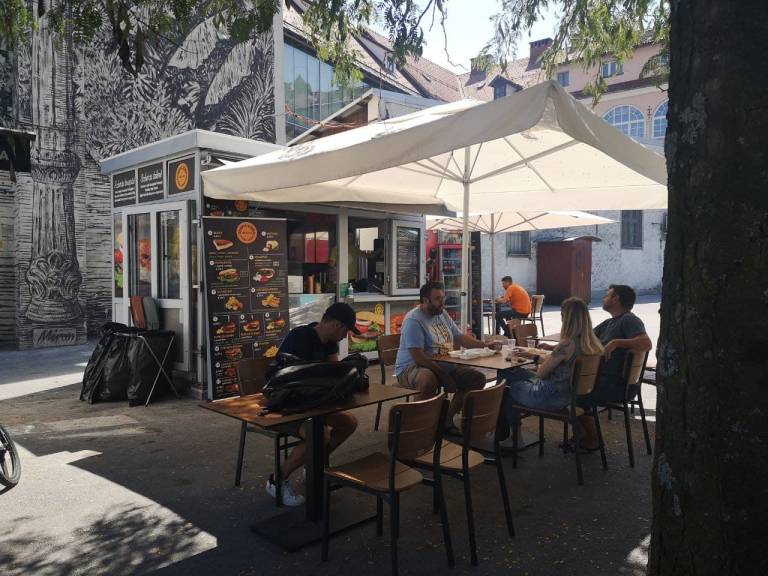Obiskovalci lahko ob pitju dobre kave ali ob grižljaju okusno pripravljenih jedi uživajo ob pogledu na srce našega mesta – osrednjo ljubljansko tržnico.