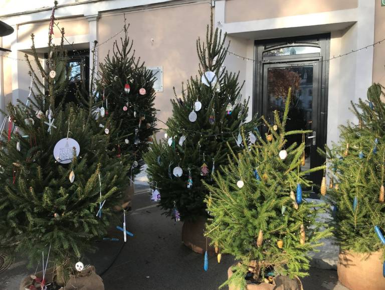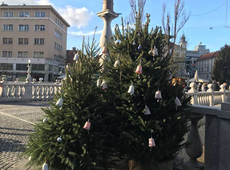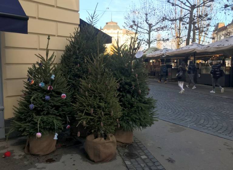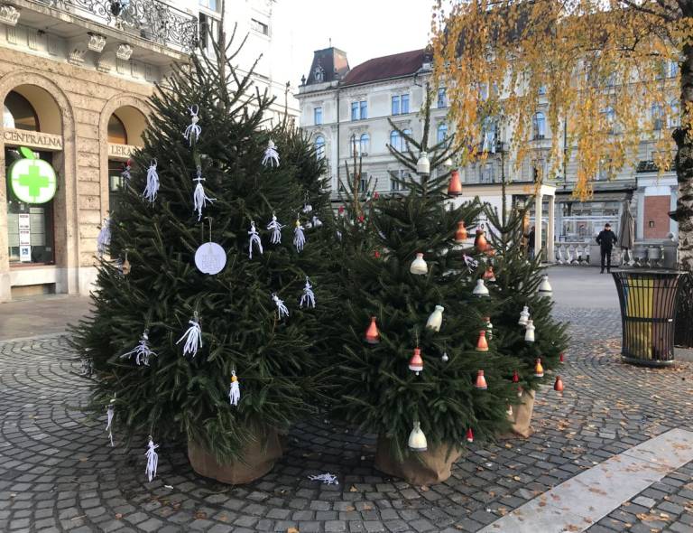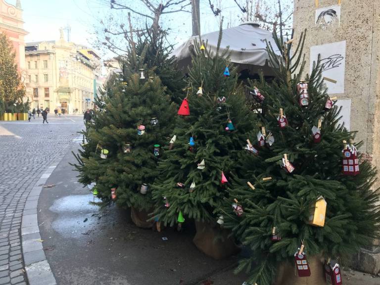 Med sprehodom po mestu opazimo, da so na številne smrečice meščani že nadeli okraske. Tiste, ki stojijo na Wolfovi ulici, so okrasili učenci devetih ljubljanskih osnovnih šol.