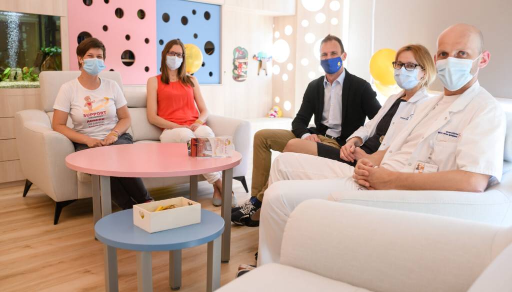 Uradna otvoritev sobe je potekala s simbolnim razvezovanjem zlate pentlje, ki je simbol otroškega raka.