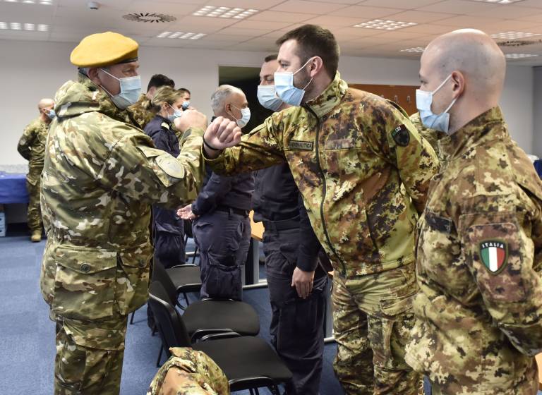 Za pomoč italijanskih vojaških zdravstvenikov pri oskrbi covidnih bolnikov v slovenskih bolnišnicah sta se 17. novembra na delovnem srečanju v Rimu dogovorila ministra za obrambo Slovenije in Italije Matej Tonin in Lorenzo Guerini.