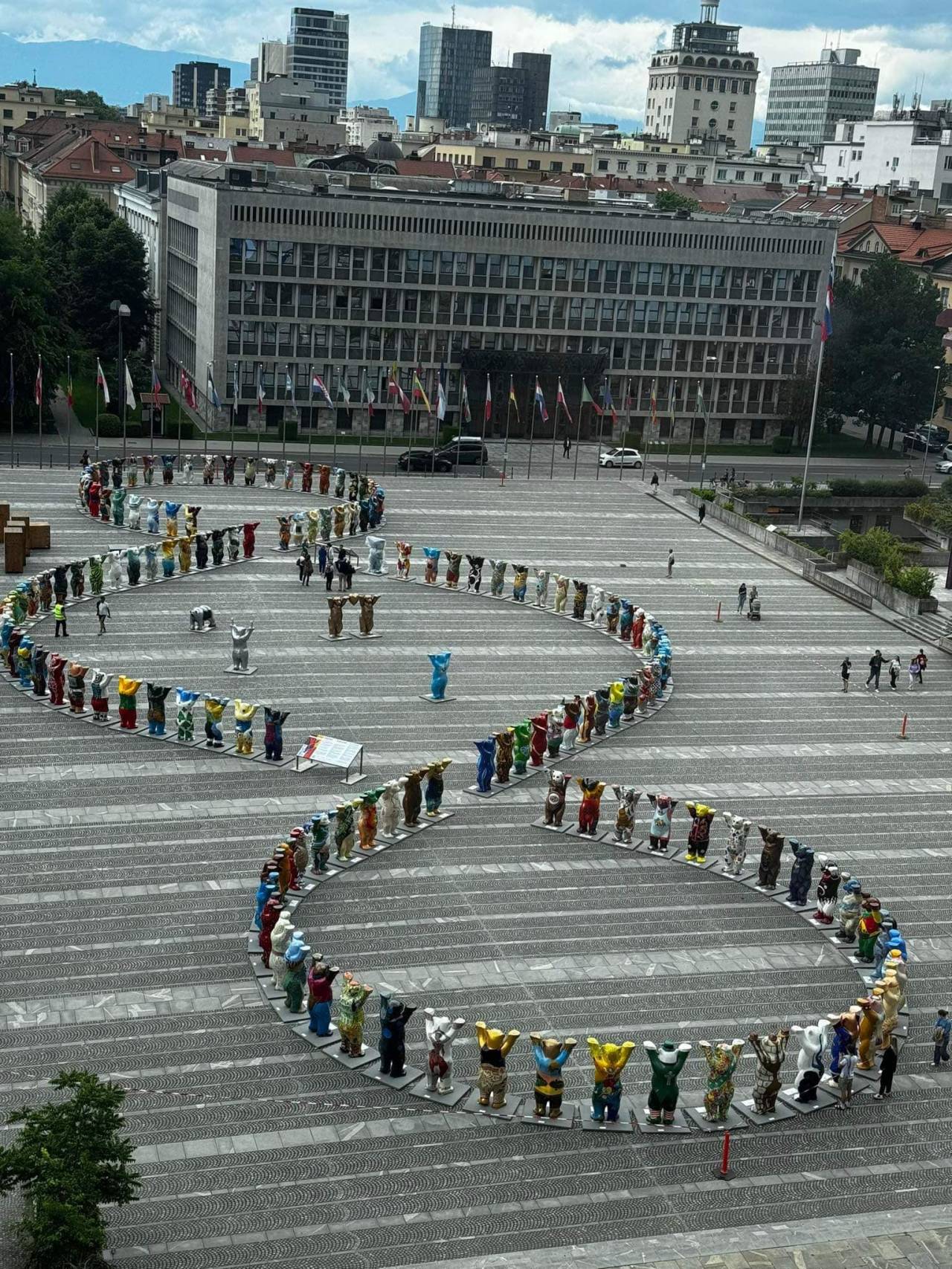 Od danes pa do 17. julija bo tako na Trgu republike z roko v roki stalo 145 medvedov, ki simbolizirajo vizijo miroljubnega sveta prihodnosti.