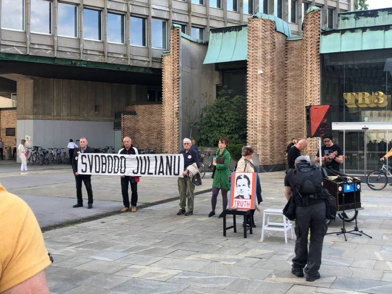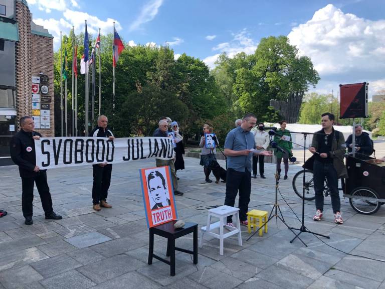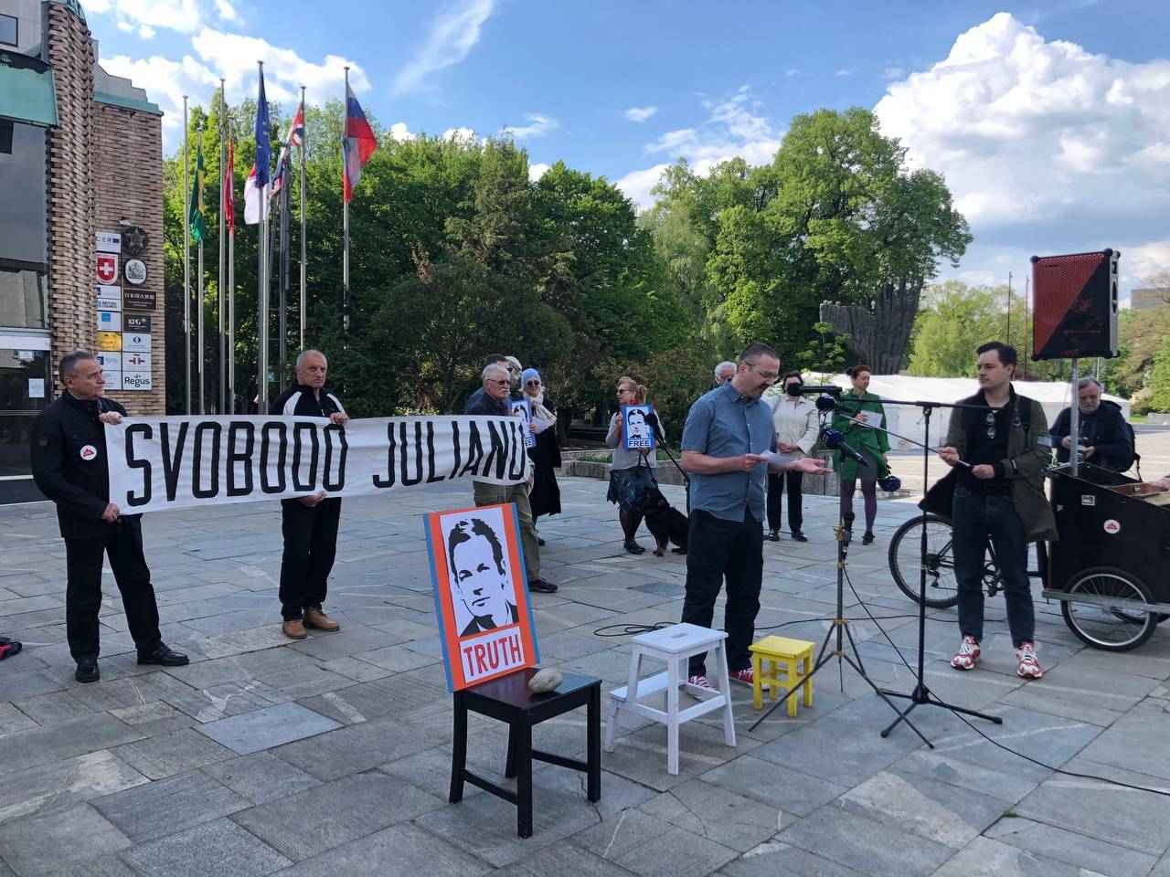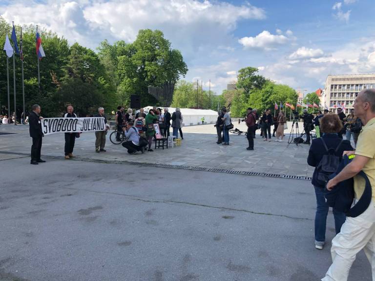 »Problem Juliana Assangea ni samo ameriški ali britanski problem, to je tudi naš problem. Pravkar smo na volitvah z veliko večino zavrnili oblast, ki je dve leti aktivno na vse mogoče načine sankcionirala izražanje protesta v javnem prostoru, s kaznovanjem skušala utišat kritične posameznice in posameznike, si brutalno podrejala medijski prostor, stradala in skoraj uničila Slovensko tiskovno agencijo, še vedno uničuje nacionalno radiotelevizijo, dosegla je, da je žvižgač Ivan Gale zaradi razkritja vladne koruptivnosti izgubil službo.«