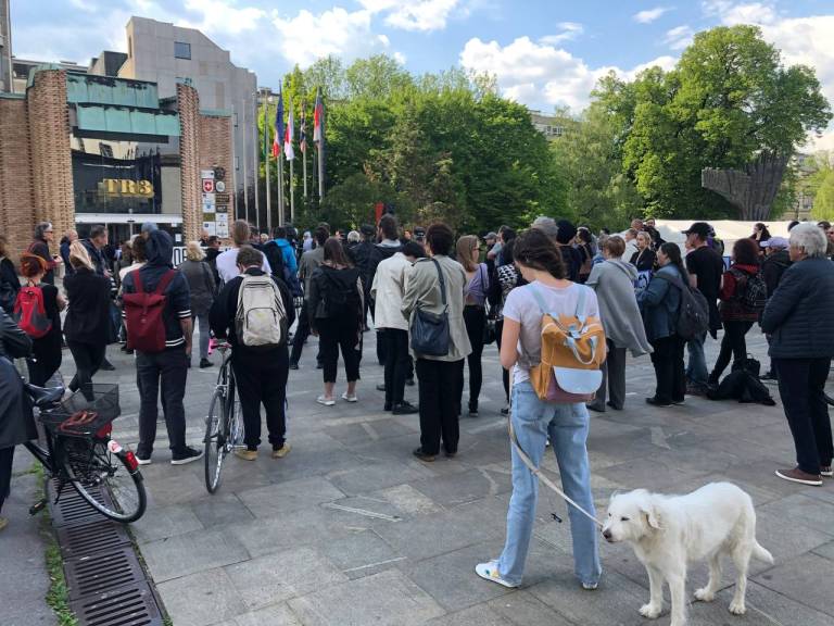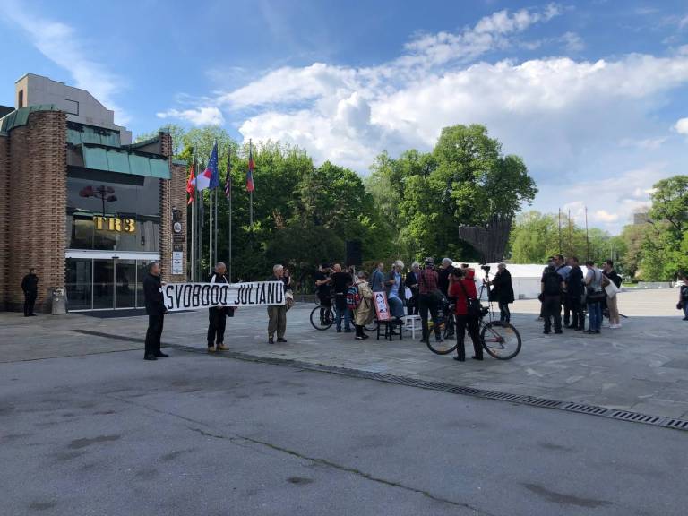 Protestniki so se tokrat na Trgu republike zbrali, da bi izrazili podporo Julianu Assangeu in jasno nastopili proti »uničevanju svobode poročanja«.
