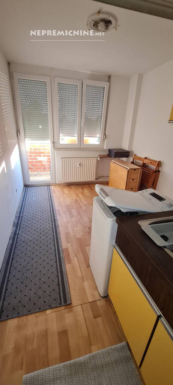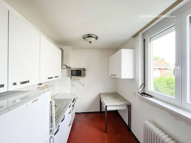 Tam se v prvem nadstropju bloka, zgrajenega leta 1975, oddaja 31,4 kvadratnega metra veliko stanovanje, ki mu pripada še 1,2 kvadratnega metra kleti.